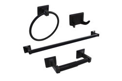 Set includes 4 pieces; 24-inch towel bar, towel ring, toilet paper holder and robe hook.